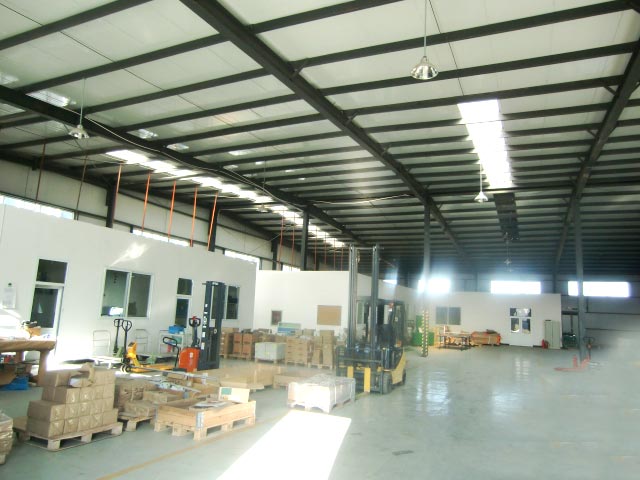 厂房采用钢结构,采光良好,库房长60米,宽42米,檐高6米,库房地面全部做防尘处理,库房内网络,水,电(380伏)消防设备齐全。