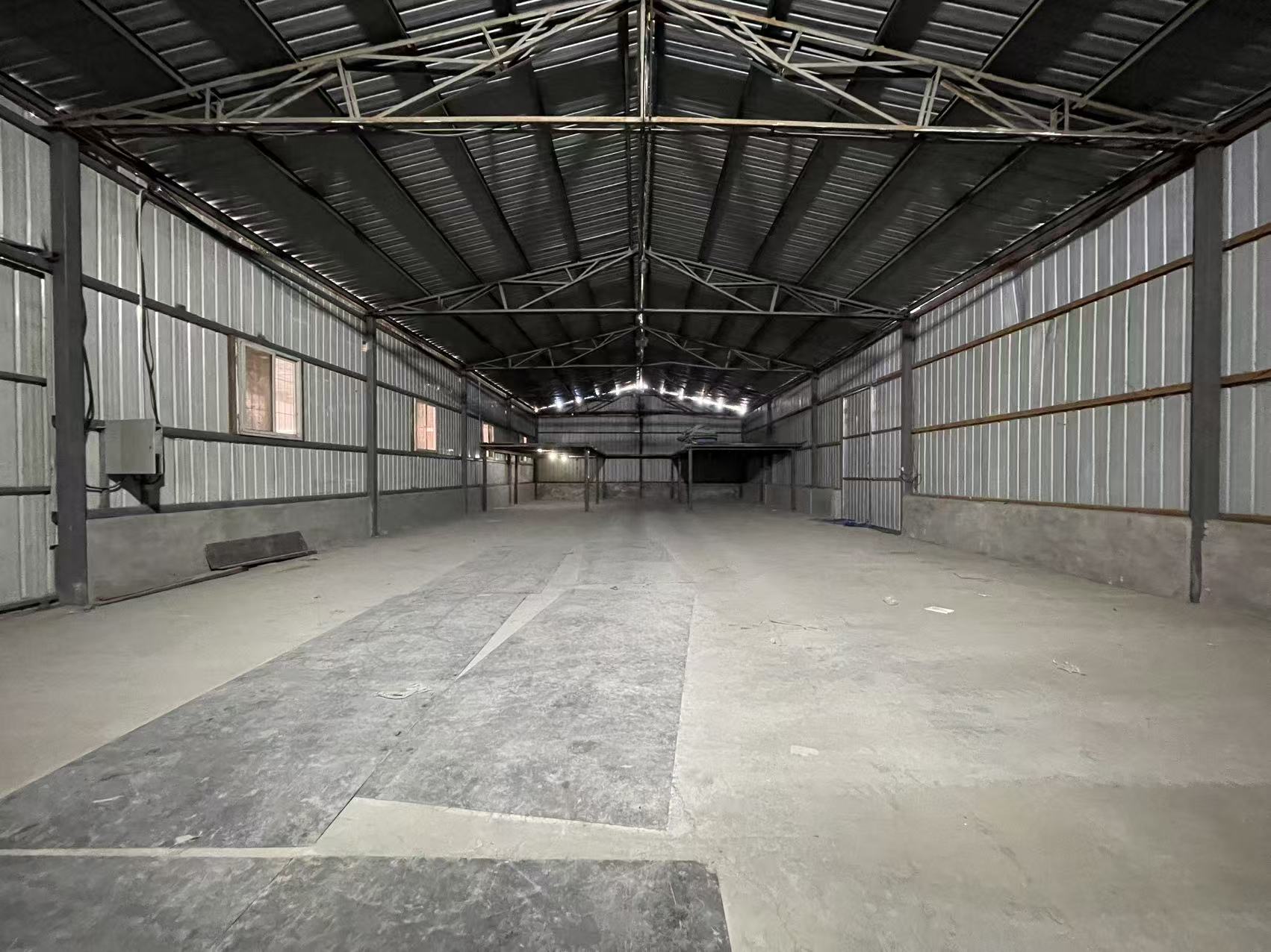 库房出租面积约16000平方米,库内高度7米,占地9万平方,全部采用目前先进的美国预制轻钢建筑材料..