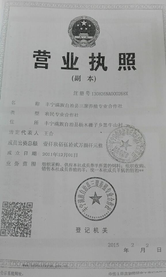 养殖场地位于河北省承德市丰宁县杨木栅子乡附近,总占地面积20000平米,其中建筑面积9100平米,包括羊舍8600平米(羊存栏900只),办公用房200平米,生活用房150平米,另有监控室100平米。水电齐全,有水井两眼和100千伏变压器一台。 场地附近环境优美,交通便利,地理位置非常优越,距离北京市怀柔区仅有2公里距离,但又不受北京市高压政策限制。场地内可以按需求进行建设(包括厂房、仓库等)。并且带有营业执照和环评证书。 优质的场地,优惠的价格,欢迎有需求的朋友来此开创新的生财之路!另外场地主人在北京市朝阳区四惠桥附近还有一小型冷库(45平米)对外出租,价格优惠!