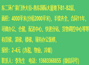> 东二环至东三环之间,地下2000平米仓储空间出租!!!
