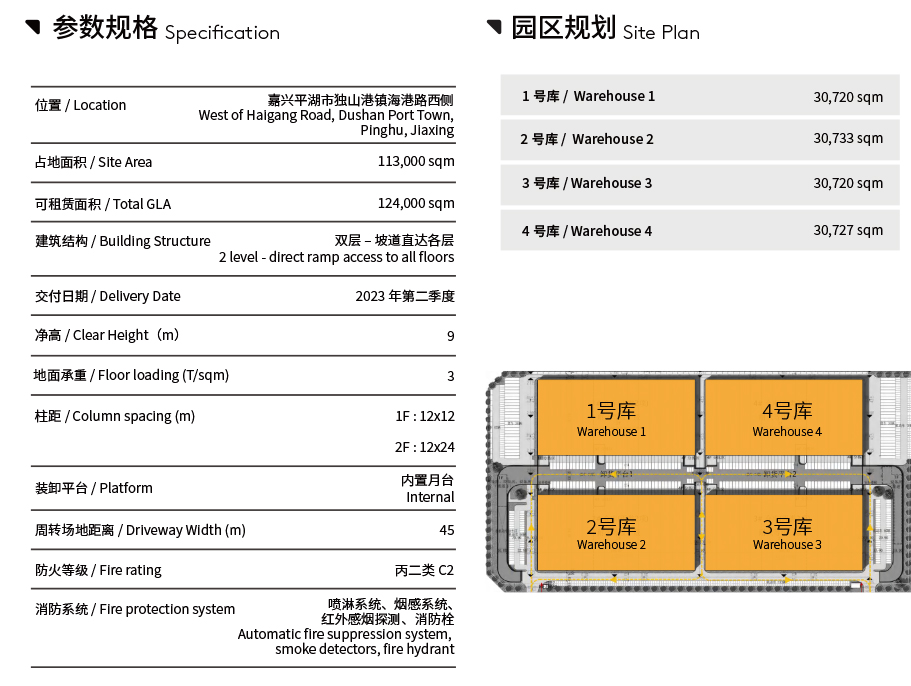 Aotai Pinghu Logistics Park is strategically located in Dushan Port, Jiaxing, only 11km frorn ShanghaiJinshan Distict and85km from the Shanghai CBD with the established infrastructure providing excelent connectivity to Chind's prernierconsumption and economic hub.