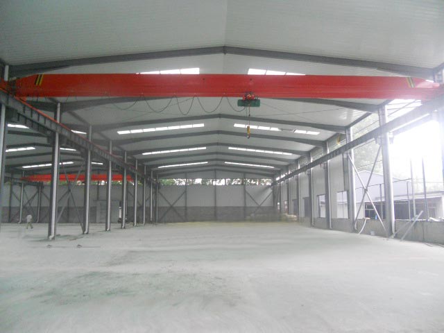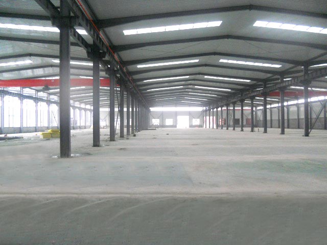 厂房位于北京顺义区杨镇顺平路沙岭段85号,有四跨新建钢结构厂库房,其中有三跨长116米,宽22米,每跨2552平米,总计7656平米,另一跨是22米x74米,计1628平米,柱高9米,顶高11米,每跨带天车,5吨,环保地面,绿色金钢沙,水电路设备齐全,交通十分便利,北京东直门918直达沙岭,下车即到,路北有标识。