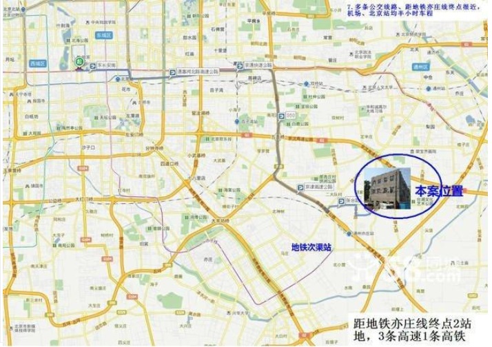 7.多条公交线路、距地铁亦庄线终点站很近,机场、北京站均半小时车程,距地铁亦庄线终点2站地,3条高速1条高铁环绕。