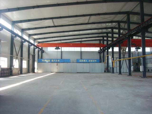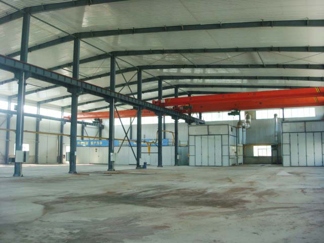 厂房二:车间2800平米,房高13米,有2个5吨天车和2个10吨天车,有3层办公住宿楼,面积共3000平米,另外还有单独餐厅300平米,